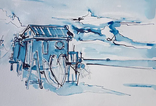 Een belangrijke inspiratiebron voor mij zijn de mensen in hun omgeving tijdens mijn (vele) reizen. ‘Ik werk dan graag met aquarelverf en Oost-Indische inkt. Een schets die ik dan later weer uitwerk op groter doek in olieverf.’